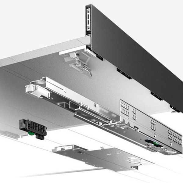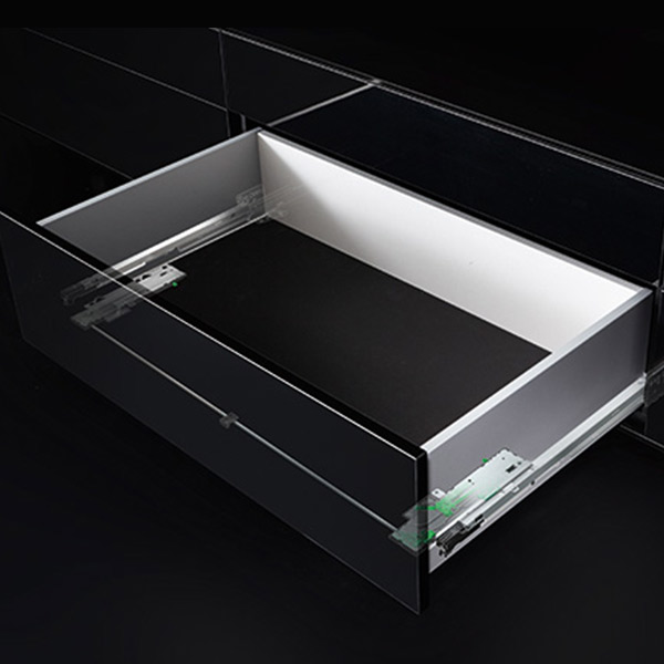 - By gently tapping the front the drawer is mechanically ejected and gently pulled in when closed with a slight swing.