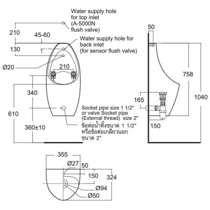 - water supply connection from top