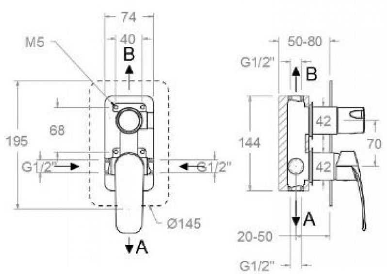 - Flow rate at 3 bar: 22 l/min through bath outlet and 21 l/min through shower outlet.