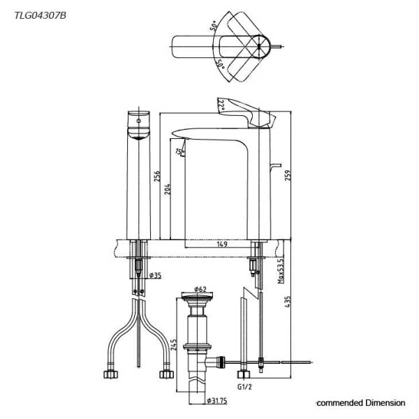 Specification Sheet: https://asia.toto.com/products/detail/spec-gen/generator2022.php?sysModelNo=tlg04307b