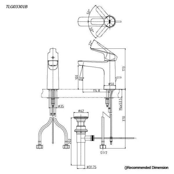 Specification Sheet: https://asia.toto.com/products/detail/spec-gen/generator2022.php?sysModelNo=tlg03301b