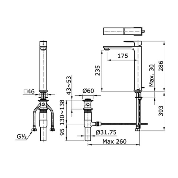 - “MA” Extended Single Lever Lavatory Faucet W/ 1″ Pop-Up Waste(Height= 286 mm)