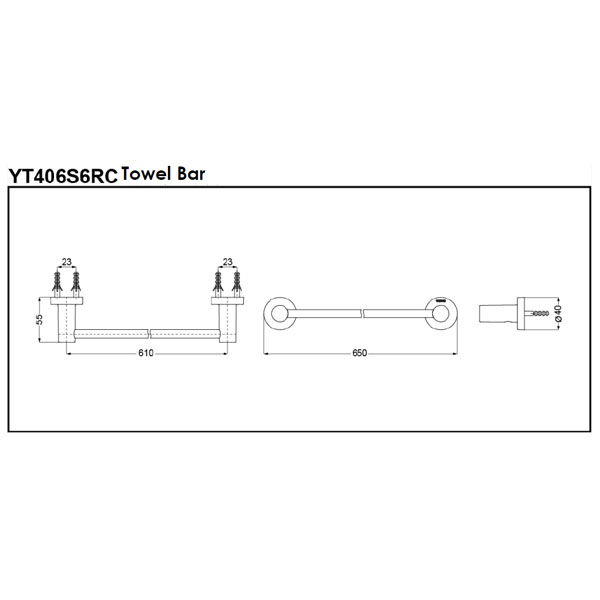 SKU: YT406S6RC Categories: Accessories, Bath and Spa Solutions, TOTO Towel Bar & Self, Towel Bar & Self